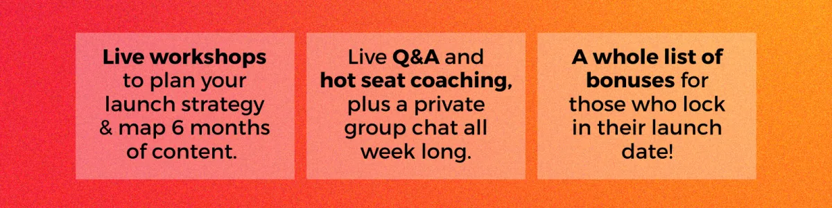 60-90 minute workshops each day, plus optional group chat, and bonus coffee chats for those who commit to launching.